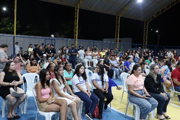 A solenidade de entrega contou com a presença da prefeita municipal, Dilmara Amaral, além de autoridades, lideranças políticas, alunos e moradores do bairro. Na programação do evento, foram realizados o descerramento da placa inaugural, o plantio de uma árvore simbolizando o compromisso com o meio ambiente e um jogo inaugural, marcando oficialmente a reabertura do equipamento esportivo.