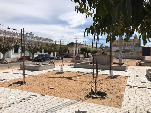 Localizada numa zona densamente povoada e estratégica, por trás da Igreja Matriz no Centro da cidade, as obras de reforma da Praça Raimundo Estácio de Sousa, mesmo nesse período de pandemia, estão bem adiantadas. Esta semana já foi iniciada a colocação do piso. Um projeto arquitetônico moderno, com foco no convívio social e na acessibilidade, preservando o busto do homenageado, Raimundo Estácio de Sousa, já que é uma das principais características da praça.